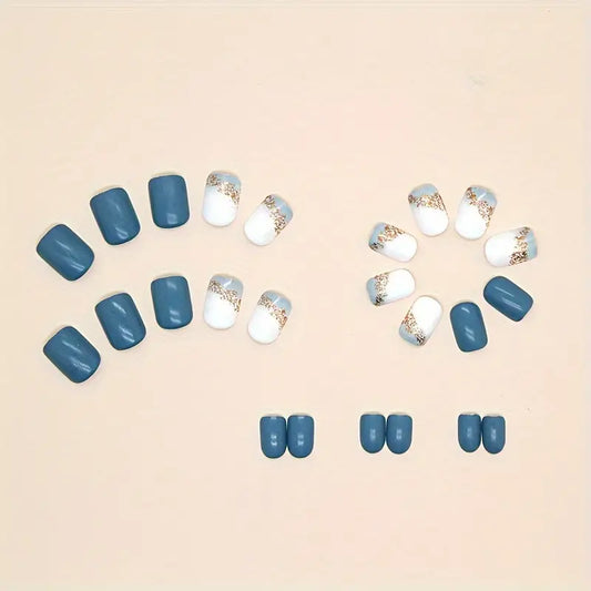 Blue with Sea Shore Ombre Nail Art Professional Press On Fake Nails
