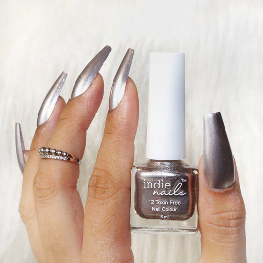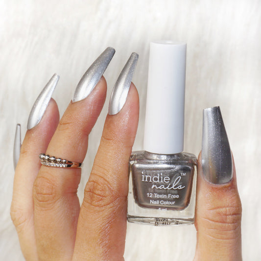 Indie Nails Silver Sonic – High-Shine Silver Nail Polish for Indian Skin Tones