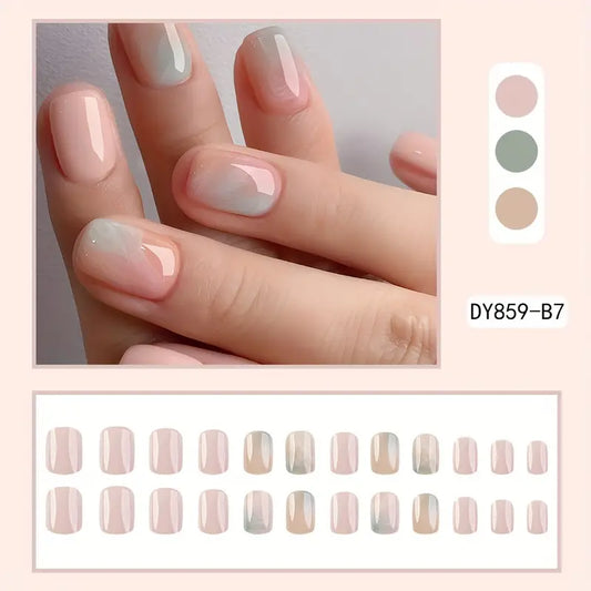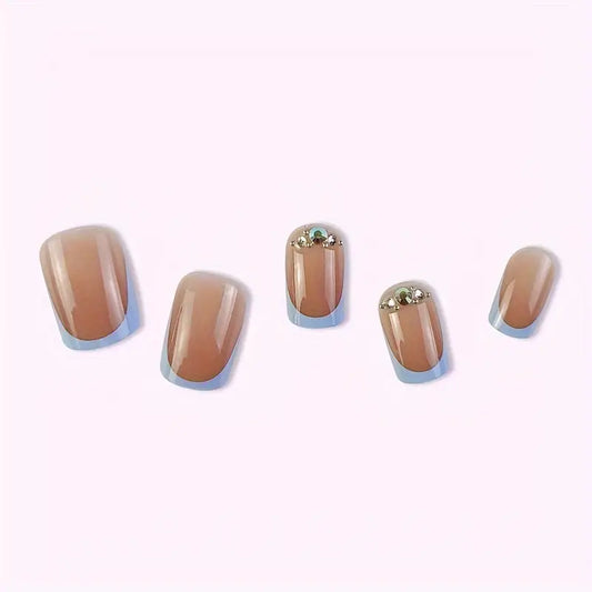 Colorful French with Nude Base Nail Art Professional Press On Fake Nails