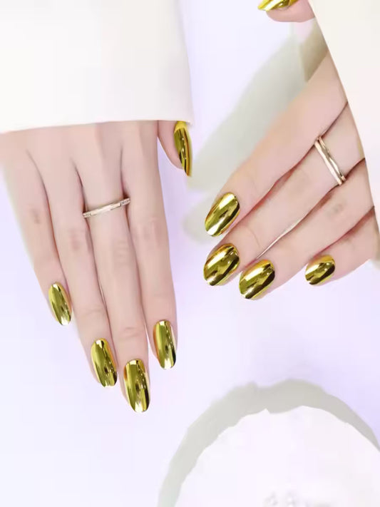 24 Karat Gold Soft Gel Press-On Nails – Metallic Gold Reusable Nails with Glue Tabs | Luxury Gold Press Ons India – Indie Nails