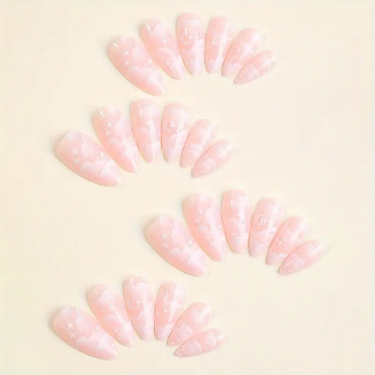 Nude with 3D Clouds, Moon and Stars Nail Art Professional Press On Fake Nails