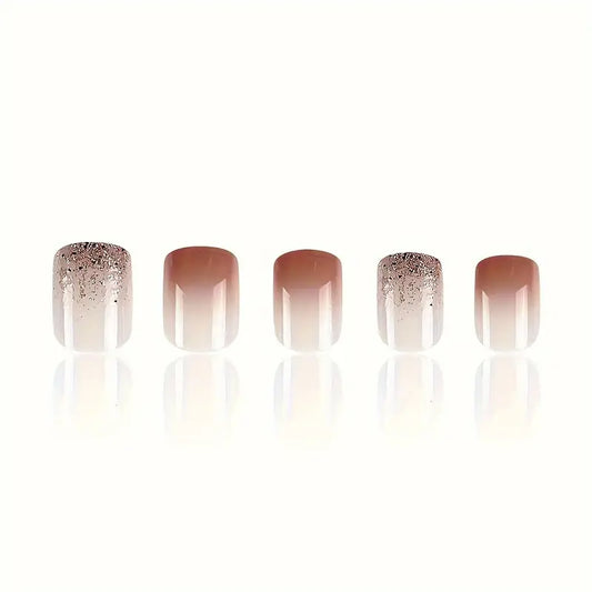 Ombre with Falling Glitters Nail Art Professional Press On Fake Nails