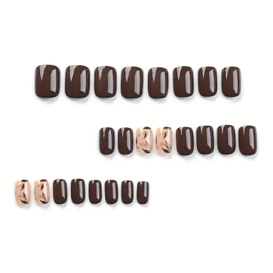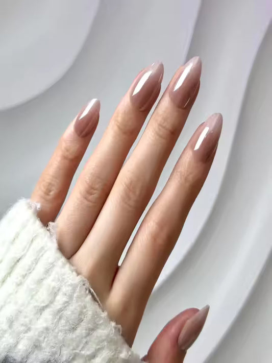 Mocha Twist Soft Gel Press-On Nails – Coffee Brown Glossy Reusable Nails with Glue Tabs | Everyday Nude Brown Press Ons India – Indie Nails