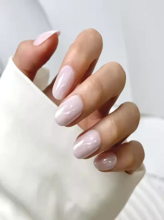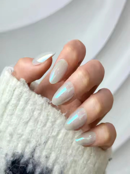 Pearly Grey Soft Gel Press-On Nails – Cool Grey Glossy Reusable Nails with Glue Tabs | Subtle Minimalist Press Ons for Indian Skin – Indie Nails