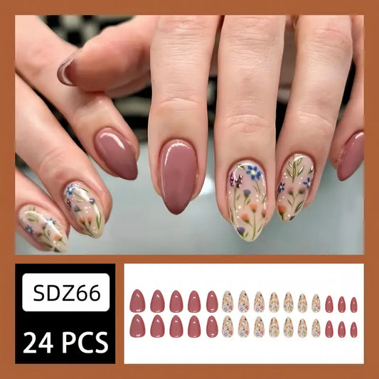 Nude with 3D Flowers Nail Art Professional Press On Fake Nails