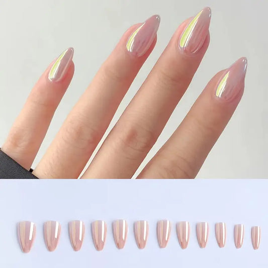 Mix Nude Marble with Metallic Glitter Nail Art Professional Press On Fake Nails
