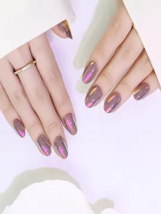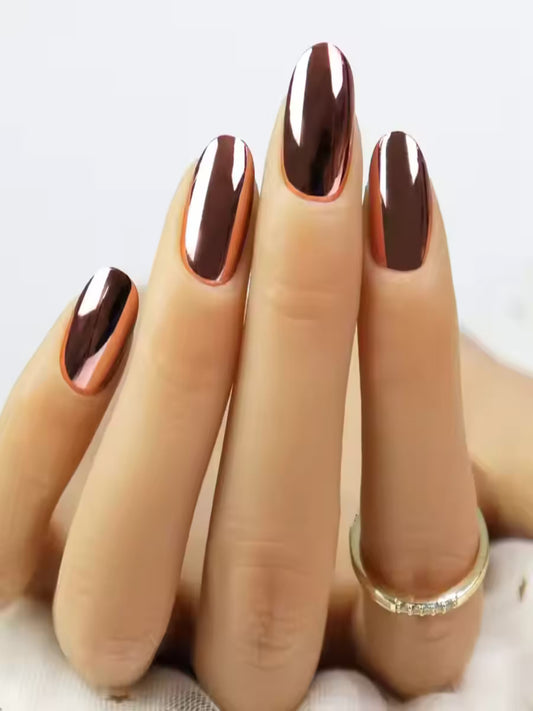 Rosegold Metallic Soft Gel Press-On Nails – Long-Lasting Reusable Nails with Glue Tabs – Metallic Nude Press Ons India | Indie Nails